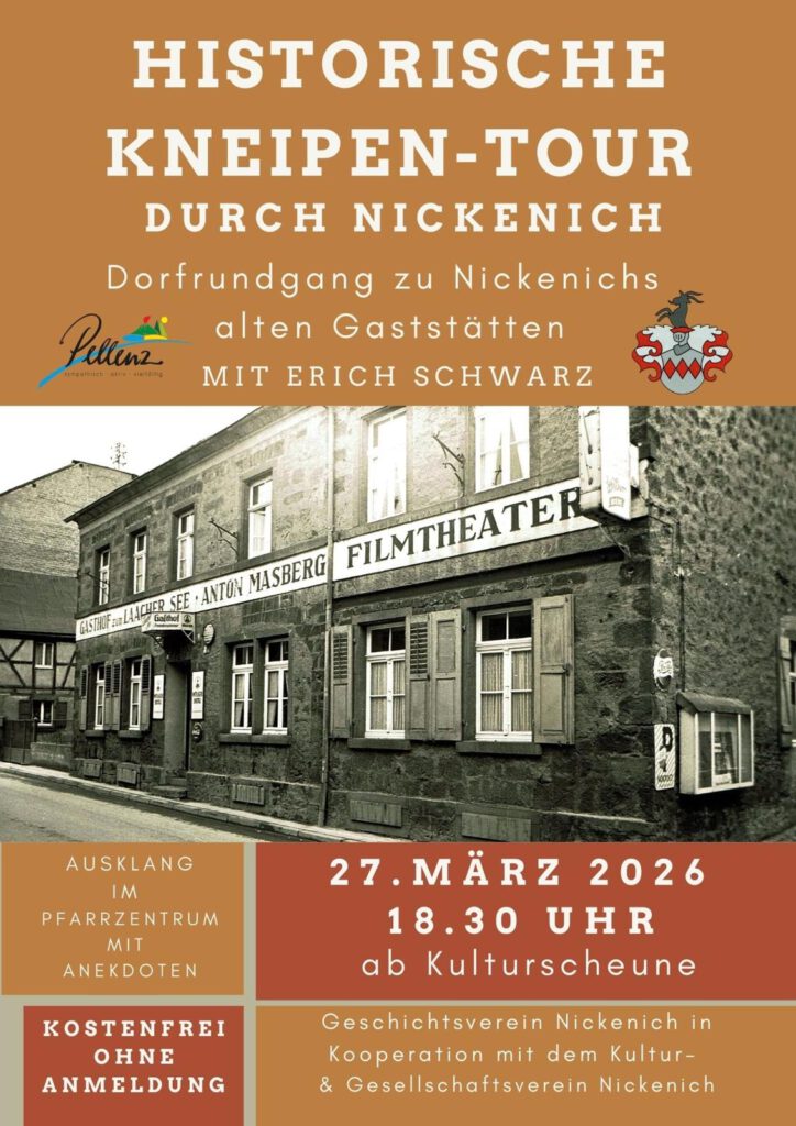 15.08.2026 14:00 Uhr Jahreshauptversammlunganschließend Eröffnung unserer Fotoausstellungmit dem Thema „Nickenich damals und heute“in der Kulturscheune